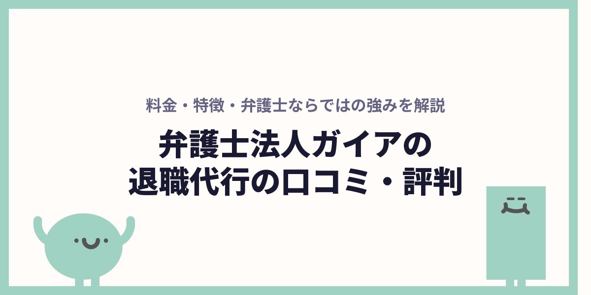 この記事では、弁護士法人ガイアの退職代行の料金・特徴・口コミを徹底レビューします。弁護士ならではの強みとデメリットの両方をお伝えするので、あなたの状況に合ったサービスかどうか判断してください。