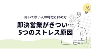 仕事内容/適性 即決営業がきつい…5つのストレス原因|向いてない人の特徴と辞め方 「今日中に契約取れ」「取れるまで帰るな」。お客さんに申し訳ないと思いながら毎日クロージング。きつい5つの原因と、限界なら取れる3つの選択肢。 2024.11.06 仕事内容/適性