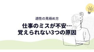 仕事内容/適性 仕事のミスが不安…覚えられない3つの原因|適性の見極め方 「また同じミスをした…」「昨日はできたのに、今日は手順が抜ける」「メモも取ってるのに、なんで?」と自分に腹が立つ。 2026.01.18 仕事内容/適性