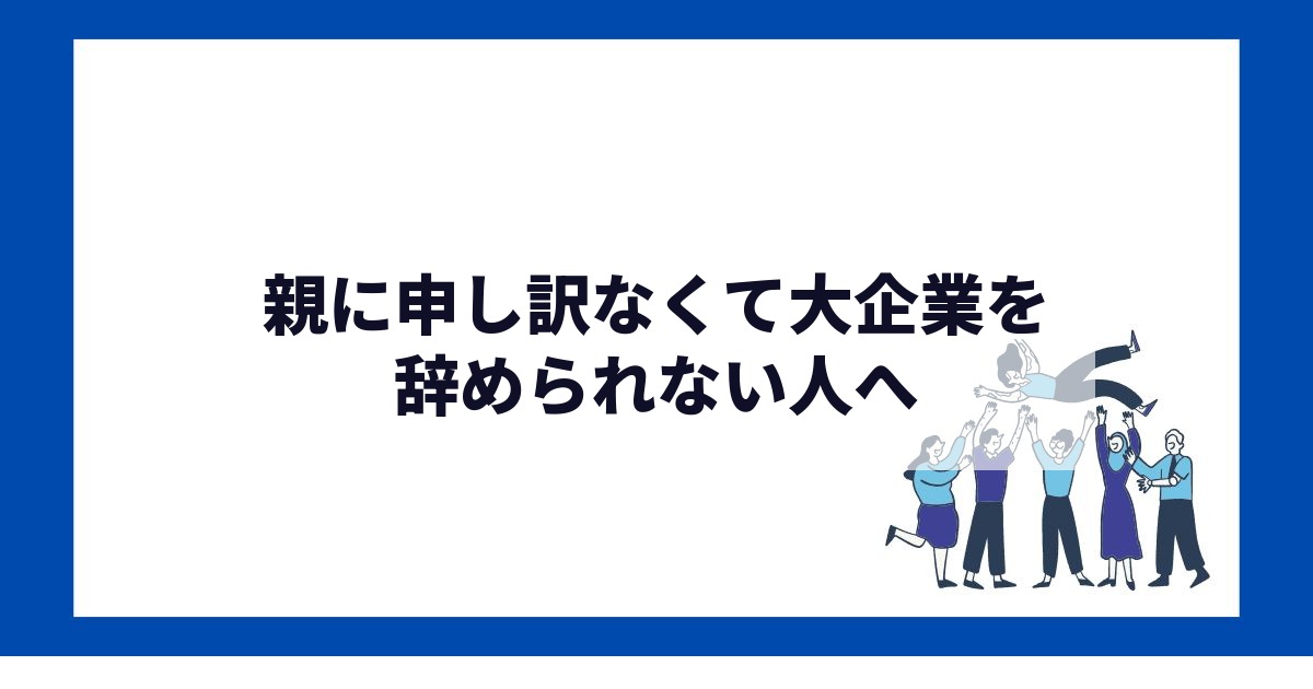親が誇りに思っている大企業を辞めるのが申し訳ない。「せっかく入ったのに」と言われるのが目に浮かぶ。これは大企業勤務の人が抱える独特の縛りだ。
