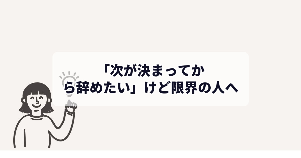 「次が決まってから辞めたい」けど限界の人へ|退職代行で先に動く判断